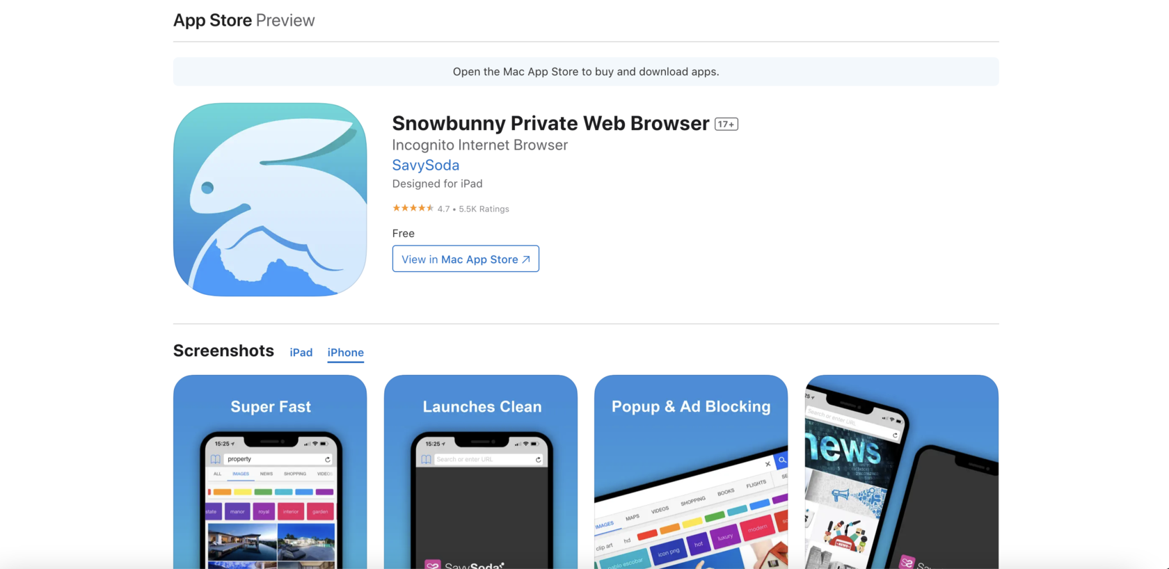 4. Snowbunny Private Web Browser is a fast and secure private web browser for iPhone and iPad. Available completely free of charge.