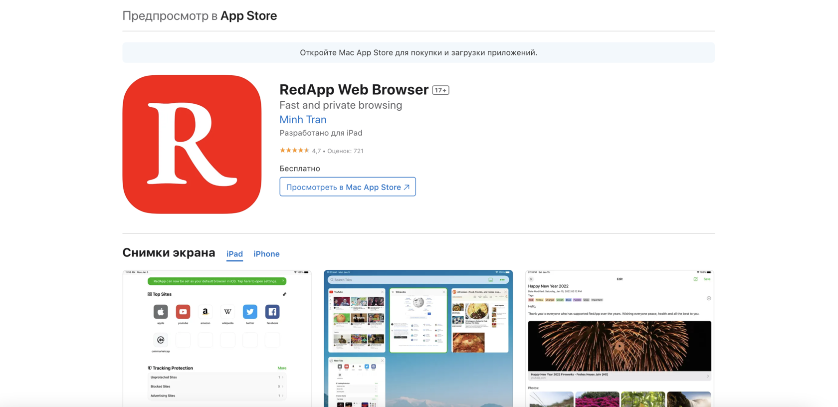 2. RedApp Web Browser is a completely free private browser on iOS that stands out from the other apps in our selection for its extensive user functionality: