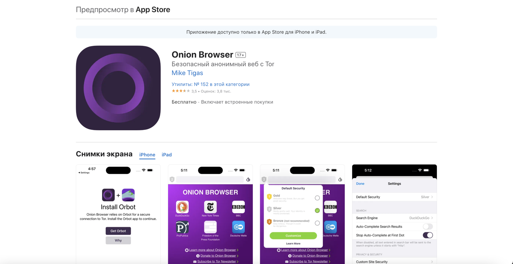 1. Onion Browser is a free Tor-based anonymous browser for iPhone and iOS.