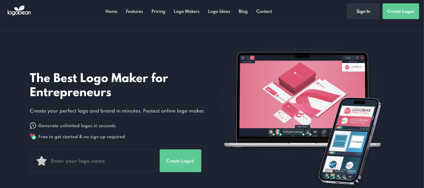 For those looking for speed, Logobean is the fastest tool on this list, generating logos in less than 10 seconds without requiring sign-up.