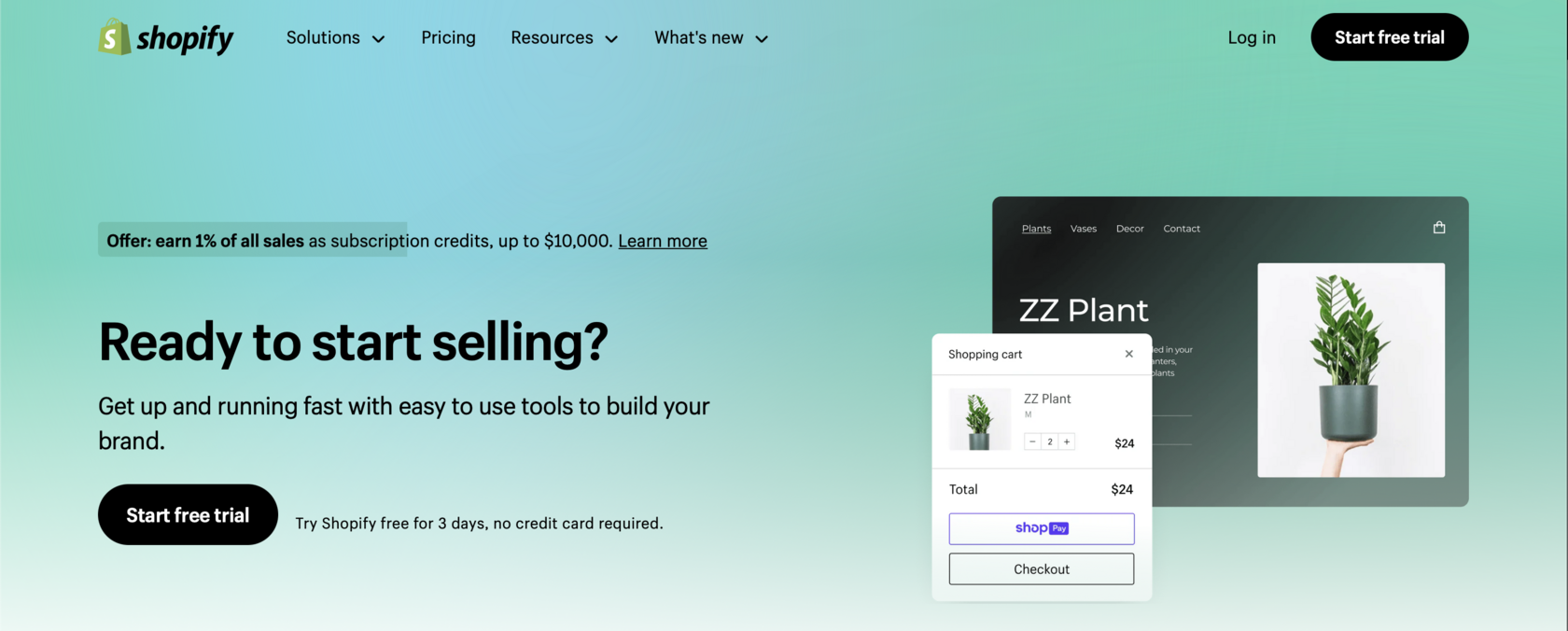 Known for its ecommerce capabilities, Shopify also provides a free logo generator. Users don't need a Shopify account to access this tool, making it a great option for anyone looking to design an on-brand logo.