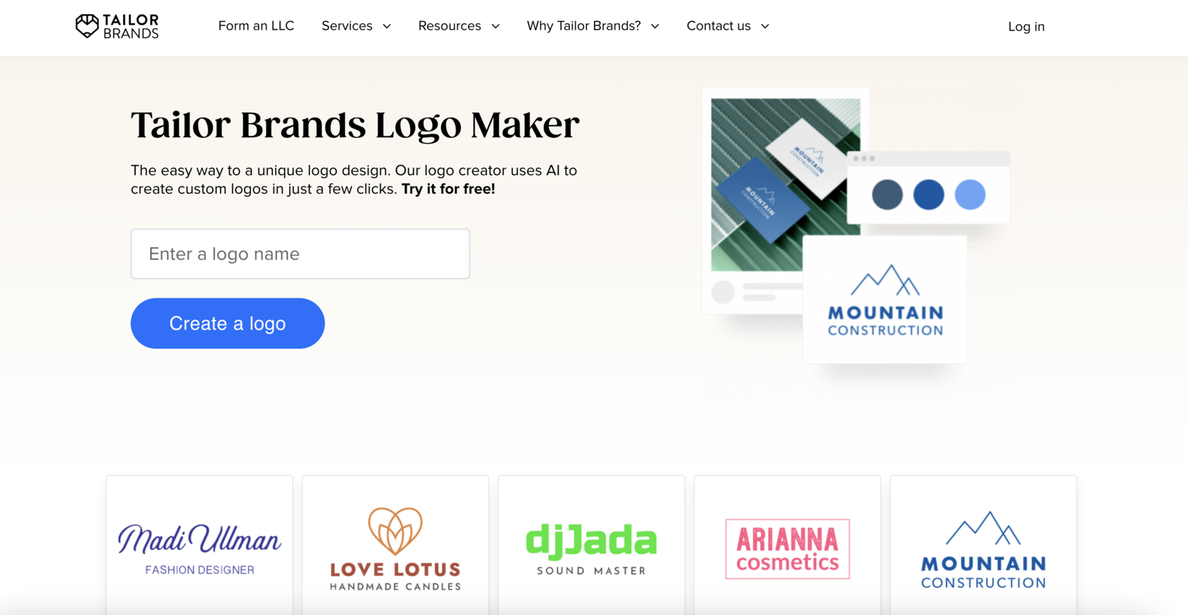 Tailor Brands offers a comprehensive platform for small businesses, assisting with everything from tax returns to trademarking. Its logo generator helps users design logos by choosing between different styles, such as name-based or icon-based logos.